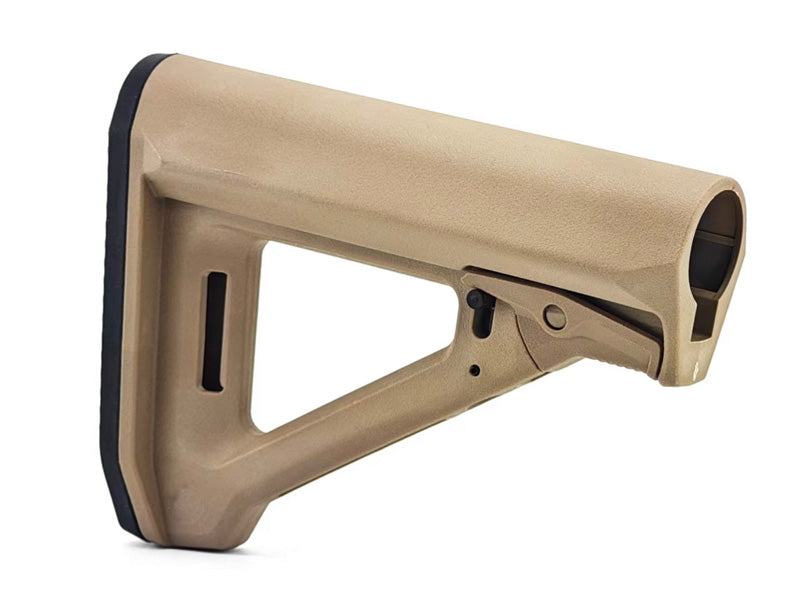 • This GG RL Style Carbine Stock[BLK] is a sleek and functional upgrade to OEM stocks. Its A-frame design offers a streamlined look while the reversed adjustment lever is easily accessible and unobtrusive. Upgrade your rifle with clean aesthetics and ease of use.