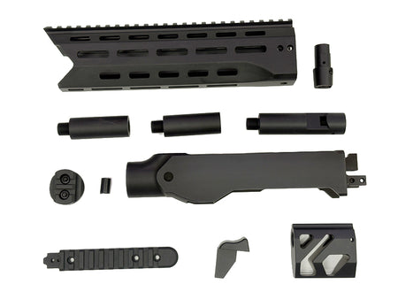 • The [RGW] Tactical Chassis Conversion Kit offers precise -14mm counter-clockwise barrel threading and comes in three length options for tailored fit. Designed specifically for KJ KC02 GBB series, this kit includes a high-quality hop-up chamber set and an M1913 stock adapter, enabling seamless integration with M4 buffer tubes. Ideal for enhancing stability and customization, it elevates your build with expert-level performance and compatibility.