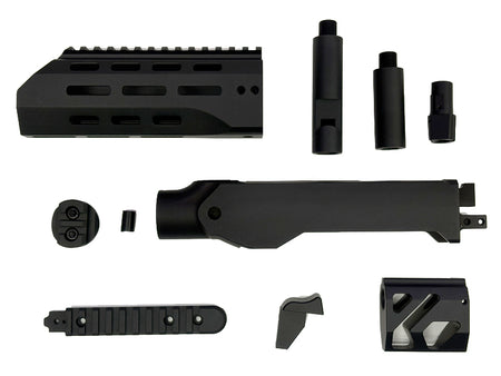 • The [RGW] Tactical Chassis Conversion Kit offers precise -14mm counter-clockwise barrel threading and comes in three length options for tailored fit. Designed specifically for KJ KC02 GBB series, this kit includes a high-quality hop-up chamber set and an M1913 stock adapter, enabling seamless integration with M4 buffer tubes. Ideal for enhancing stability and customization, it elevates your build with expert-level performance and compatibility.