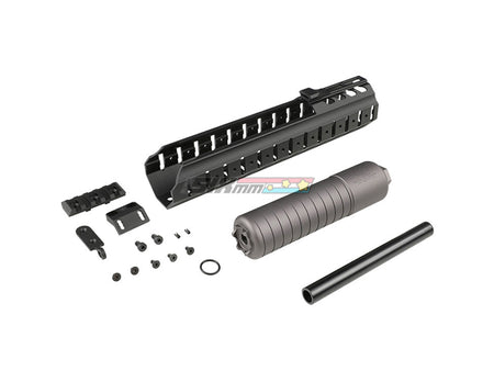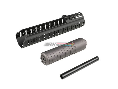 Hand guard rumored to be the current LVAW of SIG MCX and SRD762Ti type silencer (14mm reverse screw) set. Compatible with Cybergun/VFC MCX Legacy AEG. A 5-slot picatinny rail section and a scout light mount for Arisaka Defense type SF M300/M600 are included, ensuring expandability for accessories such as foregrips and weapon lights.