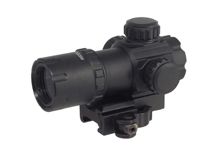 • The [MIC] ITA 30mm Green / Red CQB Dot Sight offers a 1x magnification and a 30mm tube diameter, allowing for a great field of view and unlimited eye relief. This sight also features a non-reflective emerald coated lens and comes with a quick detach straight and riser mount for easy installation. Illuminated by a CR1620 battery (not included), this sight is perfect for any 20mm picatinny mount.