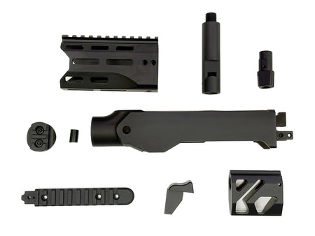 The [RGW] Tactical Chassis Conversion Kit offers precise -14mm counter-clockwise barrel threading and comes in three length options for tailored fit. Designed specifically for KJ KC02 GBB series, this kit includes a high-quality hop-up chamber set and an M1913 stock adapter, enabling seamless integration with M4 buffer tubes. Ideal for enhancing stability and customization, it elevates your build with expert-level performance and compatibility.