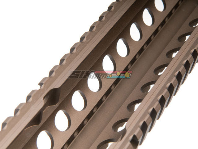 • Madbull with official licensing from Daniel Defense themselves has very faithfully reproduced the RIS II for the world of Airsoft and very aptly named it the SOPMOD II-RIS II. Just like its real steel counterpart the operator can effectively free float an M203 grenade launcher without the need for additional parts, and most importantly does not require special tools to mount the M203 grenade launcher. Just like on the real steel counterpart, this was accomplished by integrating all the parts needed to free float the M203 into the rail itself.