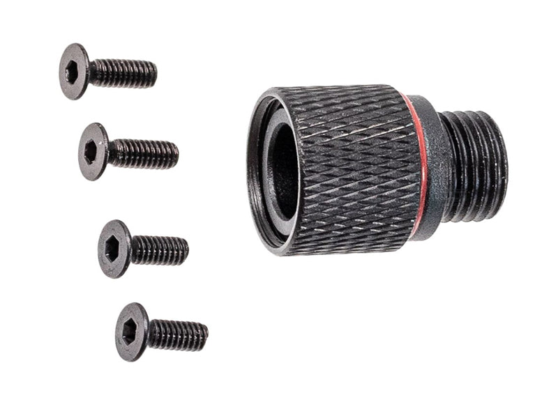 • PTS ZEV OZ9 outer barrel has an 11mm (CW) thread. Includes a thread adapter (11mm CW to 14mm CCW) and thread protector. This allows it to work with mock suppressors and tracers.