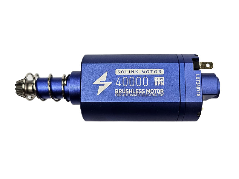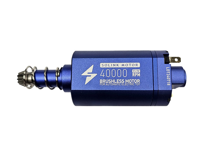 The [SOLINK] 40000rpm Brushless Motor [For AEG Series][Long Type] provides a powerful and reliable 11.1V brushless motor with up to 40000rpm for a wide variety of short axis type motor AEGs, including M4 models. This advanced motor provides a faster speed without sacrificing accuracy, so you can take your performance to the next level. Be sure to check that the electrodes are correct for maximum efficiency.