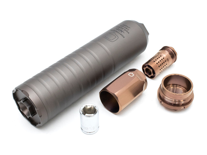 • The [RGW] TP762 Raccoon dummy silencer [Long Ver.] is a detailed replica of the TRASH PANDA suppressor from LIVE Q or DIE, inspired by the Honey Badger character. This set includes a cherry bomb style hider with a 14mm reverse thread, a whistle tip blast diffuser, multiple hubs compatible with various RGW silencers, and a wrench socket for easy installation. Perfect for enthusiasts seeking authentic styling and versatile accessory options.
