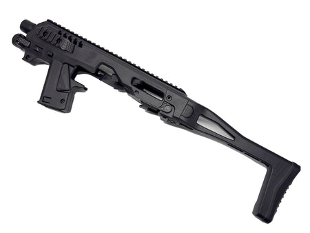 • Transform your Tokyo Marui or WE-tech G17 and G18C into a compact carbine platform with this conversion kit. Engineered for airsoft enthusiasts seeking extended sight radius and improved handling, this kit delivers the tactical versatility of a carbine without replacing your existing pistol. The black finish maintains a professional aesthetic while the modular design ensures straightforward installation. Perfect for players who want rifle-like performance from their trusted GBB sidearm, expanding your loadout flexibility for dynamic gameplay scenarios.