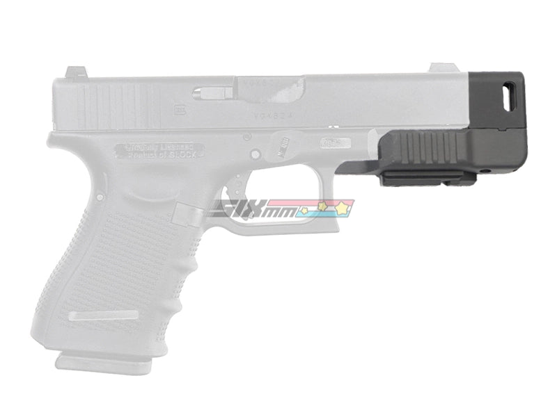 Expertly designed for Tokyo Marui and Umarex GLOCK G17 and G18C GBB Series, the [Pro Arms] DH Style Compensator features an integrated muzzle brake/compensator and accessory rail for a flashlight.