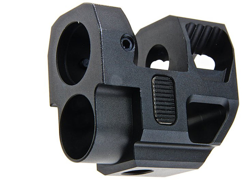 • The RGW P320 GBB Airsoft pistol KI style Velocity compensator is designed for the VFC/Elite Force M17, M18, P320 Airsoft pistol series. Best paired with RGW's KI style threaded outer barrel for proper fitment, but can fit other threaded outer barrels with no big issues. It is very easy to install and does not require any tools to attach the compensator on to the barrel. The Velocity compensator is designed to push all the way back to the thread shoulder to ensure tight fitment as well as superior bore alignment, eliminating any accuracy issues that might occur with other types of compensators. Constructed using lightweight aluminum, it is extremely robust and sturdy.