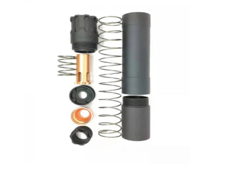 The RGW OBS Style 45 dummy silencer is a high quality mock suppressor designed to be compatible with airsoft pistols and other guns that fit its specific threading. This particular is designed after a real steel suppressor that works with the .45 ACP round and best suits guns chambered in said round such as the HK45, USP Compact, etc.