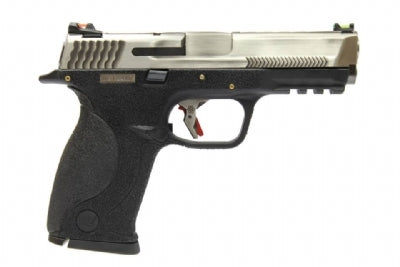 Expertly designed for precision shooting, the [WE-Tech] BIG BIRD T6A GBB Pistol [SV/SV/BK] boasts a lightweight yet sturdy frame for optimal handling. With a powerful blow back feature and a magazine capacity of 21+1 rounds, this pistol is perfect for semi-automatic shooting with 6mm BB bullets at a muzzle velocity of 330 FPS. Trusted by industry professionals, this WE pistol is powered by HFC134a and HFC22 gas for consistent performance.
