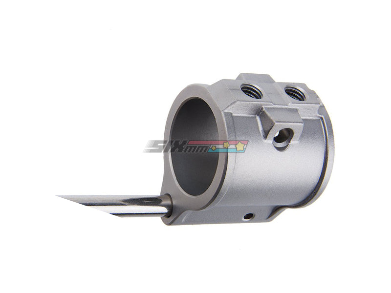 The Guns Modify stainless steel mock gas block is an accessory that adds an extra level of realism to your gas airsoft rifle. This easy to install part mates easily to the outer barrel of your rifle and can work with standard mock gas tubes if the included gas tube isn't the desired length.