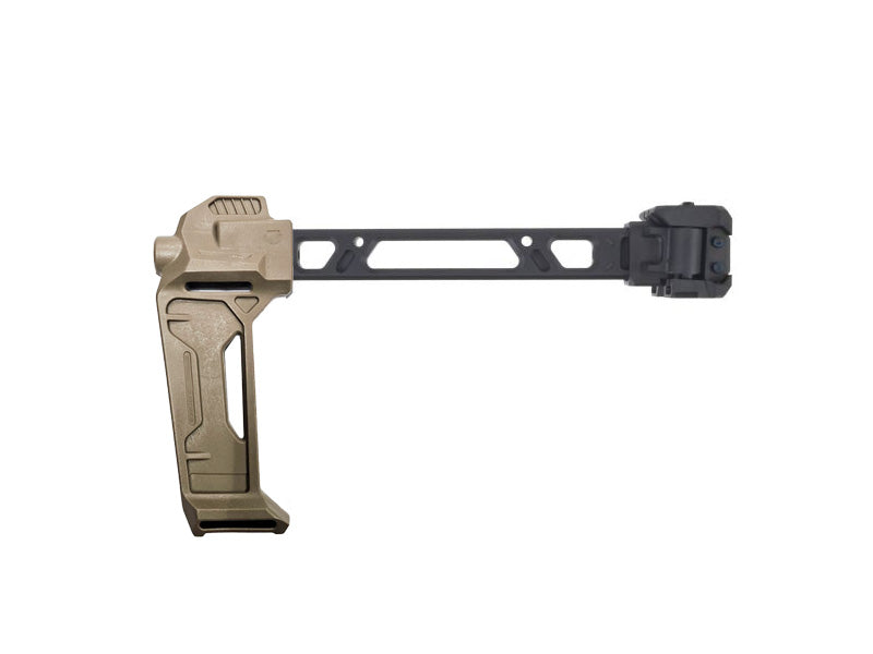 The [MadDog] Butt Stock Plate is a sleek and practical solution for your [MadDog Dual Folding Buttstock][Tan]. Its patented folding system allows for quick deployment with just a pull, while its intuitive design flips easily to the left or right without reconfiguration. Its positive lock guarantees a secure fit.
