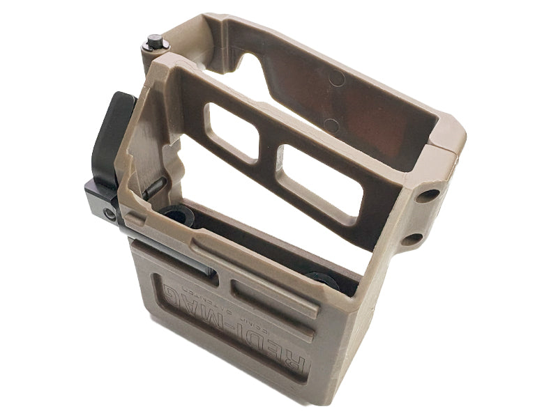 Introducing [MadDog] Full Plastic READY MAG, the professional's choice for quick magazine reloads. Constructed from metal, this ready magazine system attaches to the outside of your M4 or M16, placing an additional magazine at the ready position for CQB situations where every second counts. With modification, it can also serve as an external battery holder.