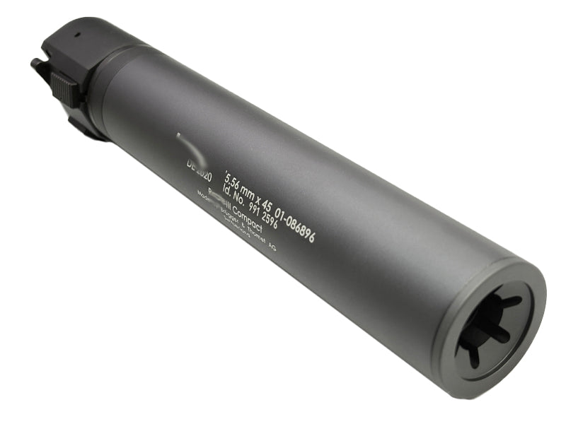 Upgrade your HK416D build with the [MadDog] III Compact. Made from durable 6061 aluminium and steel with QPQ coating, this product offers top-notch quality and compatibility with standard M4 flash hiders. Designed under the BT Style with the QD function makes it easy to use with various AEG and GBB models.