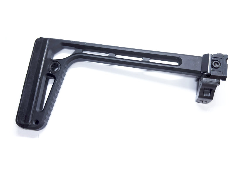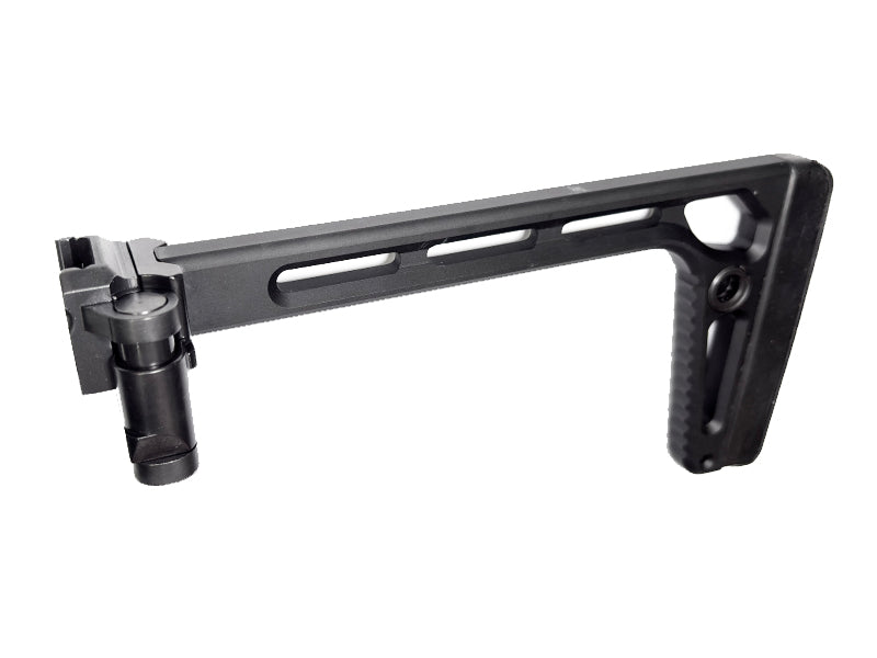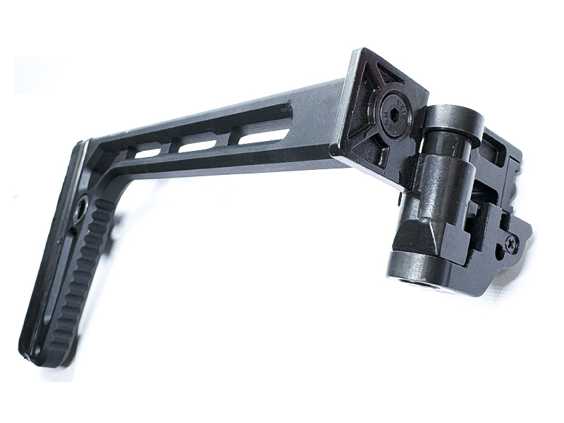 The Airsoft Artisan Light Weight Folding Style Stock is a lightweight yet robust stock designed to be compatible with Picatinny rail and is perfect for guns such as the SIG AIR MCX & MPX AEG as well as other airsoft rifles and SMGs with Picatinny rail butt plates.