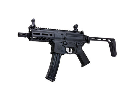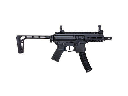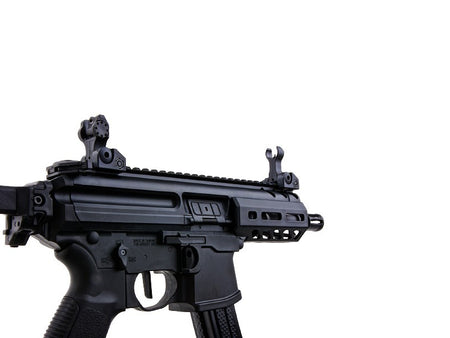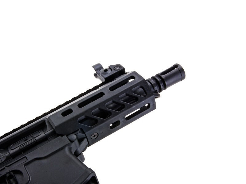 The SIG AIR King Arms MPX-K Airsoft AEG SMG Rifle [Sportline Ver.] is an expertly designed airsoft replica of the classic SIG Sauer MPX-K, a powerful 9mm short-stroke, gas-operated firearm. Inheriting the AR15/M4 platform's fire controls and operational characteristics such as a closed, rotating bolt, this AEG SMG rifle offers smooth and reliable performance with ease. Designed and manufactured by SIG Sauer, the MPX-K is perfect for airsoft fans looking to have a blast with an accurate and reliable replica of a beloved classic.