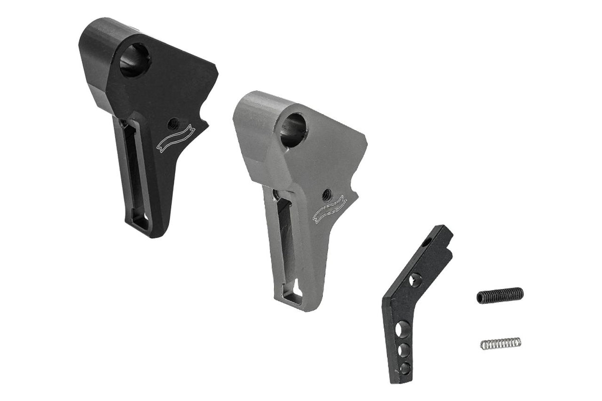 - Enhance your Walther or VFC PDP GBBP TYPE B with the [TOP SHOOTER] CNC Aluminum Trigger in black. Crafted from durable CNC aluminum, this trigger offers precise control and improved responsiveness, helping you achieve smoother, more consistent shots. Its robust design ensures long-lasting performance, making it a reliable upgrade for your airsoft setup.