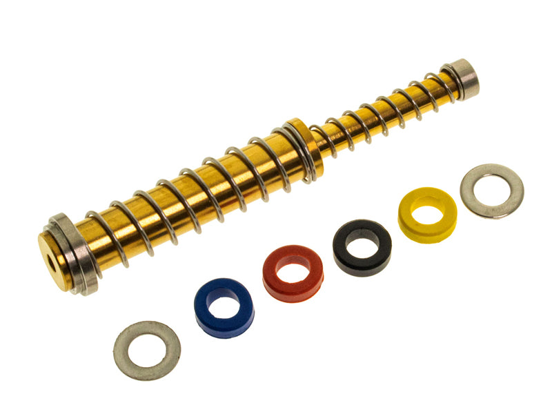 Improve the performance of your Tokyo Marui G17 MOS GBB Series with the [COWCOW Technology] Enhanced Spring Guide Rod. Made with stainless steel and CNC machining, it includes 4 buffers for customizable cycling and an enhanced recoil spring that speeds up the blowback cycle. Perfect for Tokyo Marui G17 Gen5. MOS Pistol
