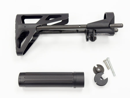 Introducing the [MadDog] Full Metal MD Style SCW PDW Airsoft Stock! Achieve the ultimate PDW build with our ultra-compact stock that omits the pipe ring and shortens the conventional wire stock to the limit. Made for Tokyo Marui M4 AEG Series, it utilizes a specialized bolt for optimal performance. Includes a small recoil weight and spring. Upgrade your game today!