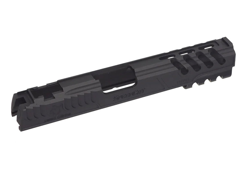 • This 5KU CNC Aluminium Limcat Slide is a perfect upgrade for Tokyo Marui HI CAPA GBB Series. It is expertly crafted from CNC 7075 aluminum for superior durability and features an anodized finish for sleek and stylish aesthetic. Its lightweight design and speed cat style allows for improved maneuverability and faster trigger response. Additionally, it includes the nozzle housing and spring guide plug for enhanced performance. Ideal for Marui Hi-capa and M1911 gas blowback pistol.