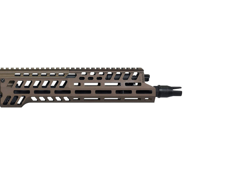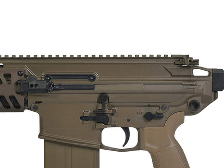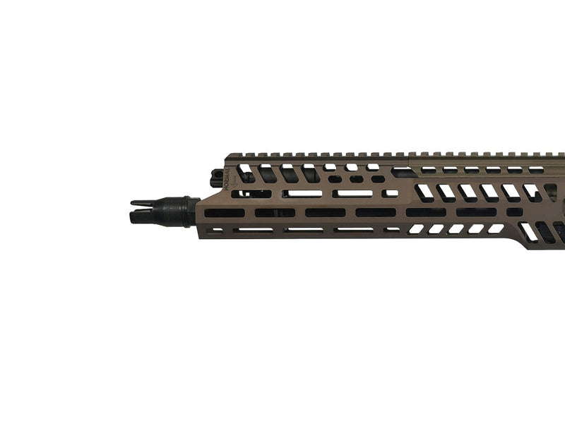 This APFG SS Style XM7 Airsoft GBB Rifle delivers authentic military aesthetics with professional-grade performance. Built on the proven VFC system, it features a CNC-machined aluminum handguard with M-LOK rail compatibility for tactical customization. The 12.7" aluminum outer barrel and steel flash hider provide realistic proportions, while the quick-adjust HOP-UP system ensures consistent accuracy. Fully ambidextrous controls—bolt catch, magazine release, selector, and charging handle—accommodate any shooter. The non-reciprocating SPEAR side charging handle and MCX AR stock adapter complete the ergonomic design. Steel internals including bolt catch and hammer guarantee durability. Includes one 20-round SPEAR XM7 style gas magazine. FDE colortone finish captures authentic US Army NGSW aesthetics.