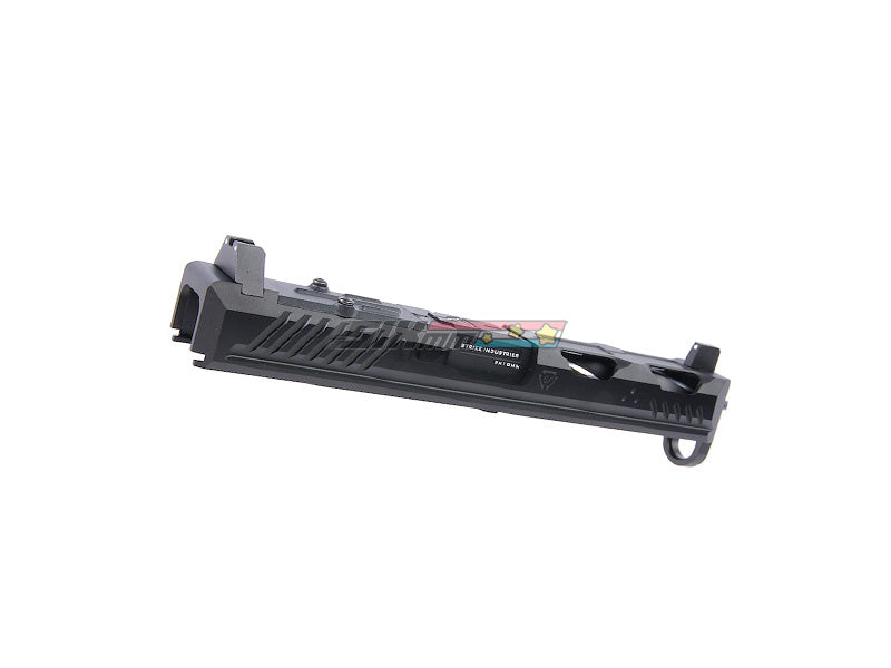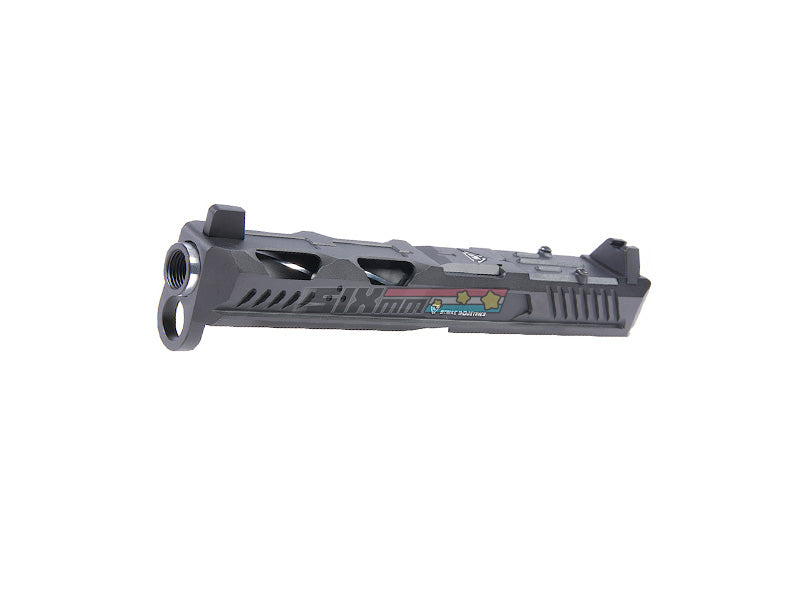 • The EMG ARK slide is fully licensed and crafted from lightweight aluminum designed to fit directly onto the Umarex / VFC Glock 17 gen 4 GBB pistol.