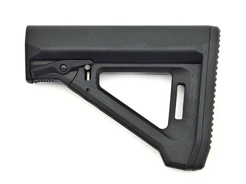This GG RL Style Carbine Stock[BLK] is a sleek and functional upgrade to OEM stocks. Its A-frame design offers a streamlined look while the reversed adjustment lever is easily accessible and unobtrusive. Upgrade your rifle with clean aesthetics and ease of use.