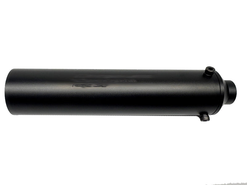 - Precision-engineered aluminum dummy silencer designed for pencil M16 outer barrels. This Version 2 features a tool-free locking mechanism that secures directly to the triangle front sight—no threaded adapter required. Maintains authentic suppressor aesthetics while offering reliable, hassle-free installation. Weighs 275g with a 235mm length for balanced airsoft performance. Part No. SIX-1206. Black finish.