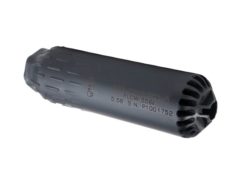 The Angry Gun Flow 556K dummy suppressor features an innovative 3D-printed stainless steel construction finished with durable Cerakote coating for enhanced resilience. It includes a CNC steel Tornado flash hider that serves as a robust mounting base using 14mm CCW threads. Designed with a strong twist-lock mechanism, it ensures quick detachment and secure attachment for versatile use. Ideal for Airsoft rifles chambered in 5.56mm, 17 HMR, and 5.7mm, it faithfully replicates the materials and build quality of real steel suppressors, combining authenticity and functionality for serious Airsoft enthusiasts.
