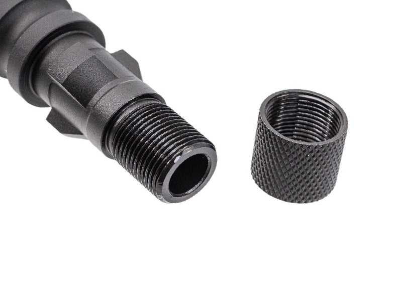 - 採用 14 毫米 ccw 螺紋,可提供更高的穩定性和耐用性。使用隨附的鋼螺紋保護器可增強武器的性能並保護螺紋。