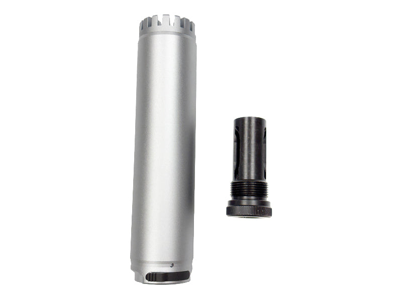 Introducing [MadDog] MARS QD Rifle Suppressor [SV], a revolutionary metal silver suppressor for your rifle. Experience the silent revolution with this expertly crafted suppressor, designed to reduce sound and recoil for improved accuracy. Upgrade your rifle today and take your shooting to the next level.