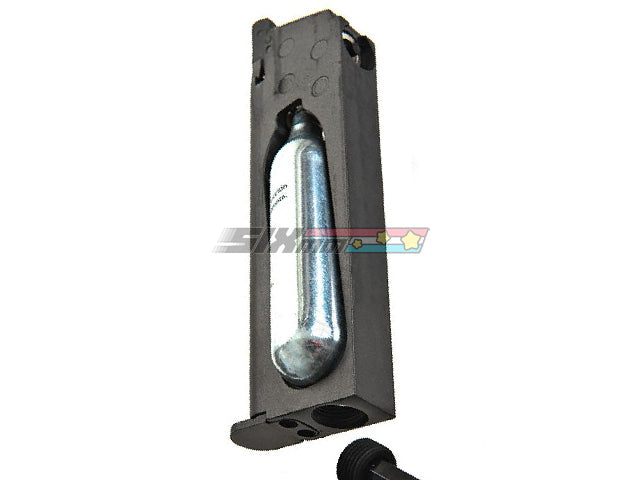 - 17 發 6 毫米 CO2 彈匣,用於 KWC 1911 Gas BlowBack CO2 版 (KCB76AHN);使用 CO2 膠囊(12 克),該彈匣不附帶 CO2 膠囊或 BB。